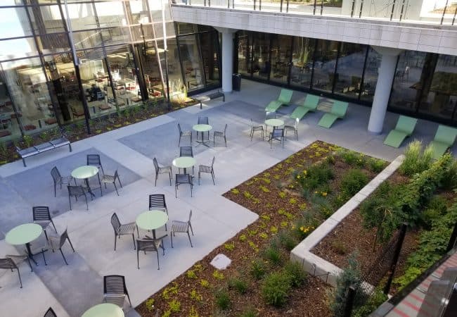 Plaza re-development over the southern and eastern property limits around the ATB and Telus office towers located at 10030 MacDonald Dr. NW Edmonton, AB. The project consists of demolition and removal of the existing wear surface and planters. Removal of the old waterproofing system, demolition and repair of the existing structural slab, replacement of the existing drains, plumbing and associated asbestos abatement. Installation of a new waterproofing membrane, installation of a new concrete topping and new concrete planters, associated electrical works, new railing installation and associated landscaping works. All work is being completed above existing tenant space. Working with the public and client to accommodate the pedestrian and vehicle traffic through work zones is paramount to the success of the project.