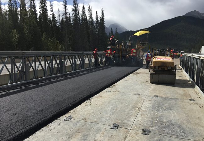 This project is located along the Trans-Canada Highway in Banff National Park and involved the installation of a temporary detour bridge and then the rehabilitation of two two-lane bridges over an animal crossover.  The scope of work includes a full detour of Highway 1, concrete cold milling, demo and installation of cast-in-place concrete barriers, deck overhang, approach slabs, and deck joints.  The work also includes partial depth repairs to the deck, concrete overlay, modifications to the abutments and piers, installation of bridge rail, approach asphalt, and bearing pad replacement.  After the bridge rehabilitations are complete, the detour road and bridge will be removed and the area restored.