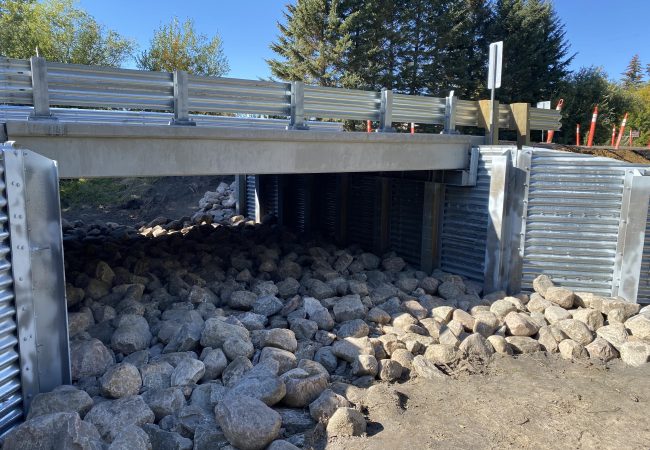 This project is located along Range Road 210, near Josephburg , AB. The scope of work included removal of the existing bride structure, driving new steel piles, instream works and construction of a new standard precast bridge.