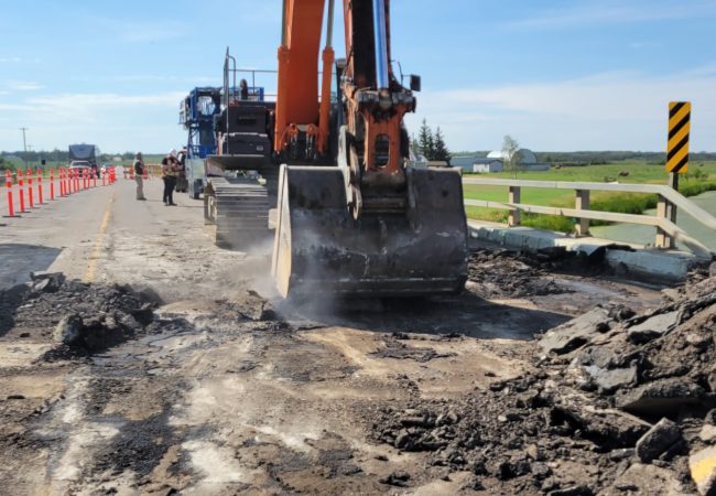 CWP is proud to be undertaking a comprehensive bridge rehabilitation project on Hwy 36 over the Vermillion river, Two Hills. This project involves essential concrete repairs on both the substructure and superstructure of the bridge, ensuring its long-term durability and safety. Our team is also constructing new drain troughs to enhance water management, applying waterproofing and sealing techniques to protect the bridge from environmental elements, and installing fresh asphalt pavement for a smooth, resilient surface. These improvements are vital to maintaining the bridge’s functionality and ensuring safe passage for all vehicles. CWP is committed to delivering high-quality, efficient solutions to support the infrastructure needs of the Two Hills community
