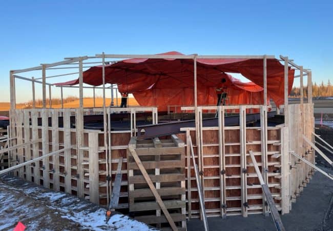 CWP’s scope of work consisted of the construction of two 2 m tall octagonal tank foundations. Each of the 250 m3 foundations were designed to hold evaporator tanks for the Blackrod SAGD facility. This project also included setting cast in place anchor bolts and cold weather concrete curing.